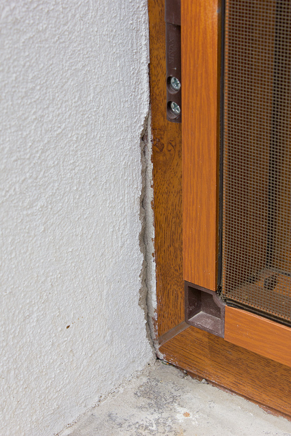 На първата снимка се вижда че в ъгъла между дограмата и шпакловката съм слагал акрилен силикон.