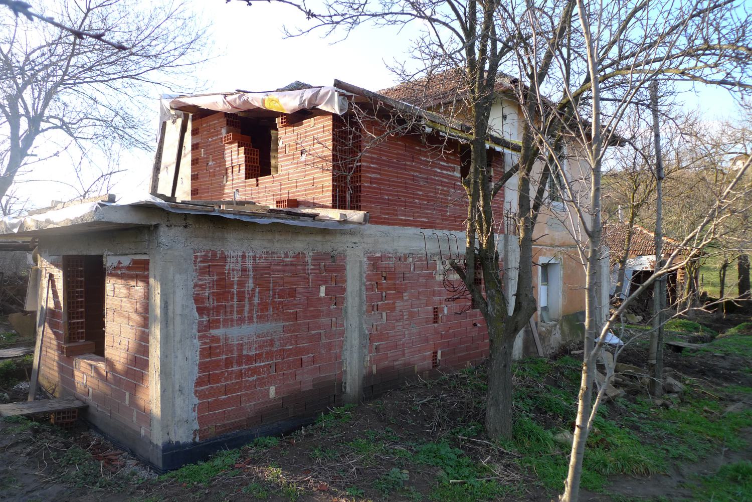 ..Малко реални снимки но в недовършен вид, оказа се че нямам по-нови. Но в момента колоните всички са метър под стрехата и отзаде е пусната средната колона..не че има значение за общия вид на къщата..