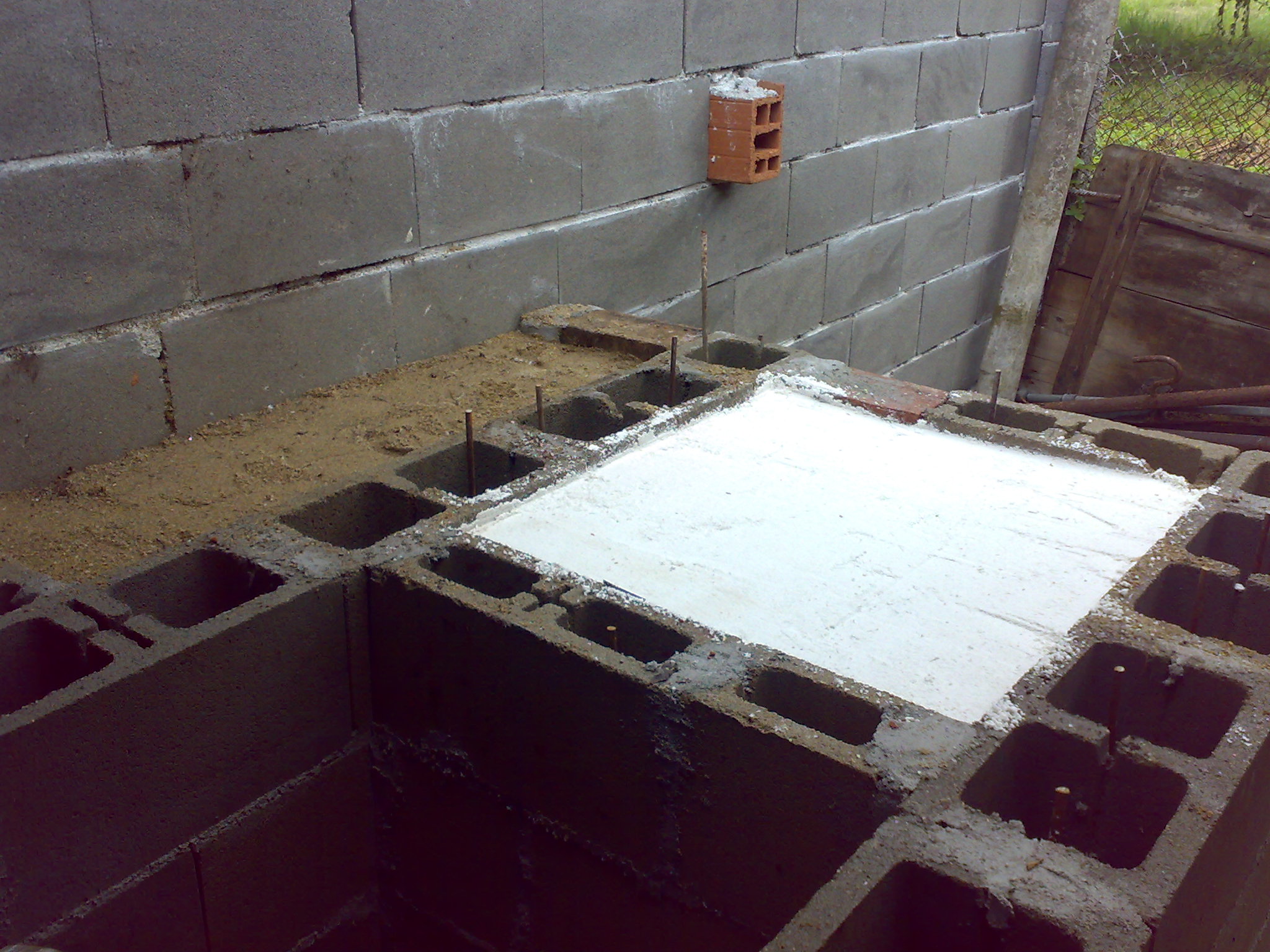 Дъждът ми обърка плановете, нооо пак си насмогнах :) . Комшиите имаха доста керемиди и ми помогнаха с пълнежа. Натроших ги и почти на 50 см дупката е пълна с керамика. Догоре напълних кухината както ме посъветвахте с пясък, натрошени стъкла, кварцов пясък и сол/около 20 см/ и почти съм готов с кофража. Остана утре/ дано не вали/ да армирам и другата седмица ще леем бетона.
