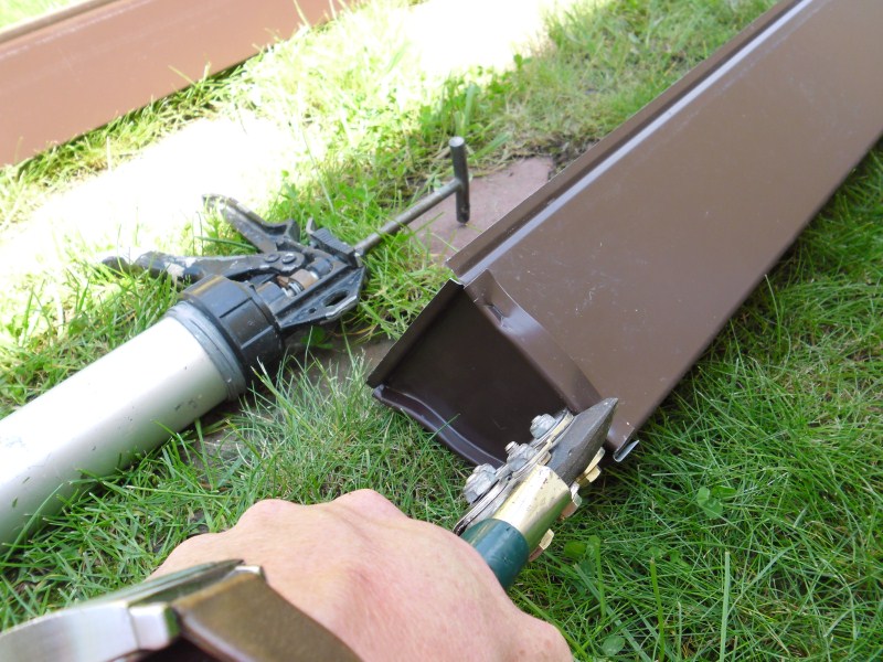 след като се монтира улуците горе на покрива се нитосват, а снадката се обработва с PU-уплътнител (силикон)