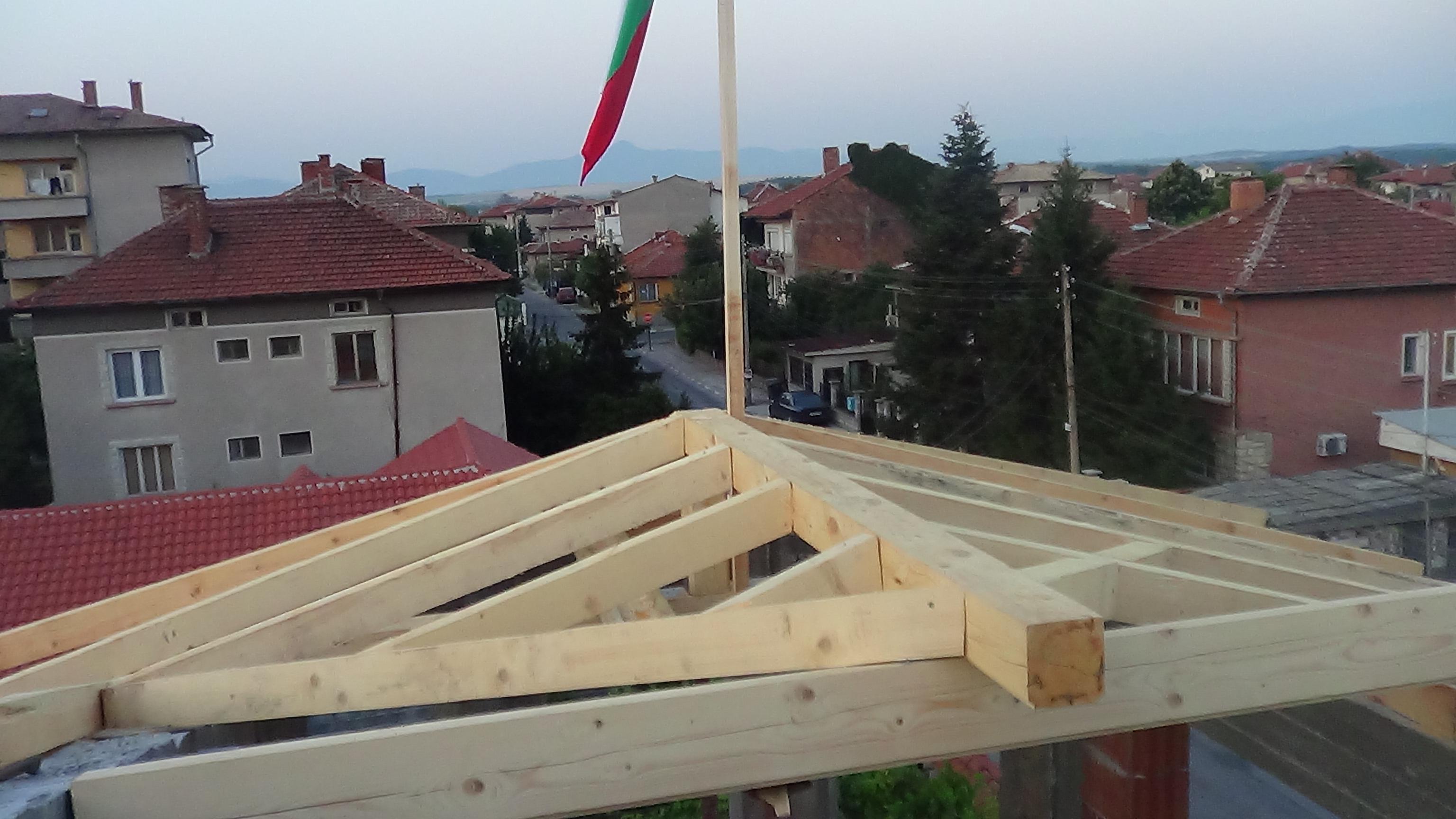 Да. Покривната конструкция е дървена (столици 14х18 и ребра 12х8). Ще кача снимки. Тондах позволяват 17 градуса с максимално застъпване 31-32 см и подпокривно фолио.