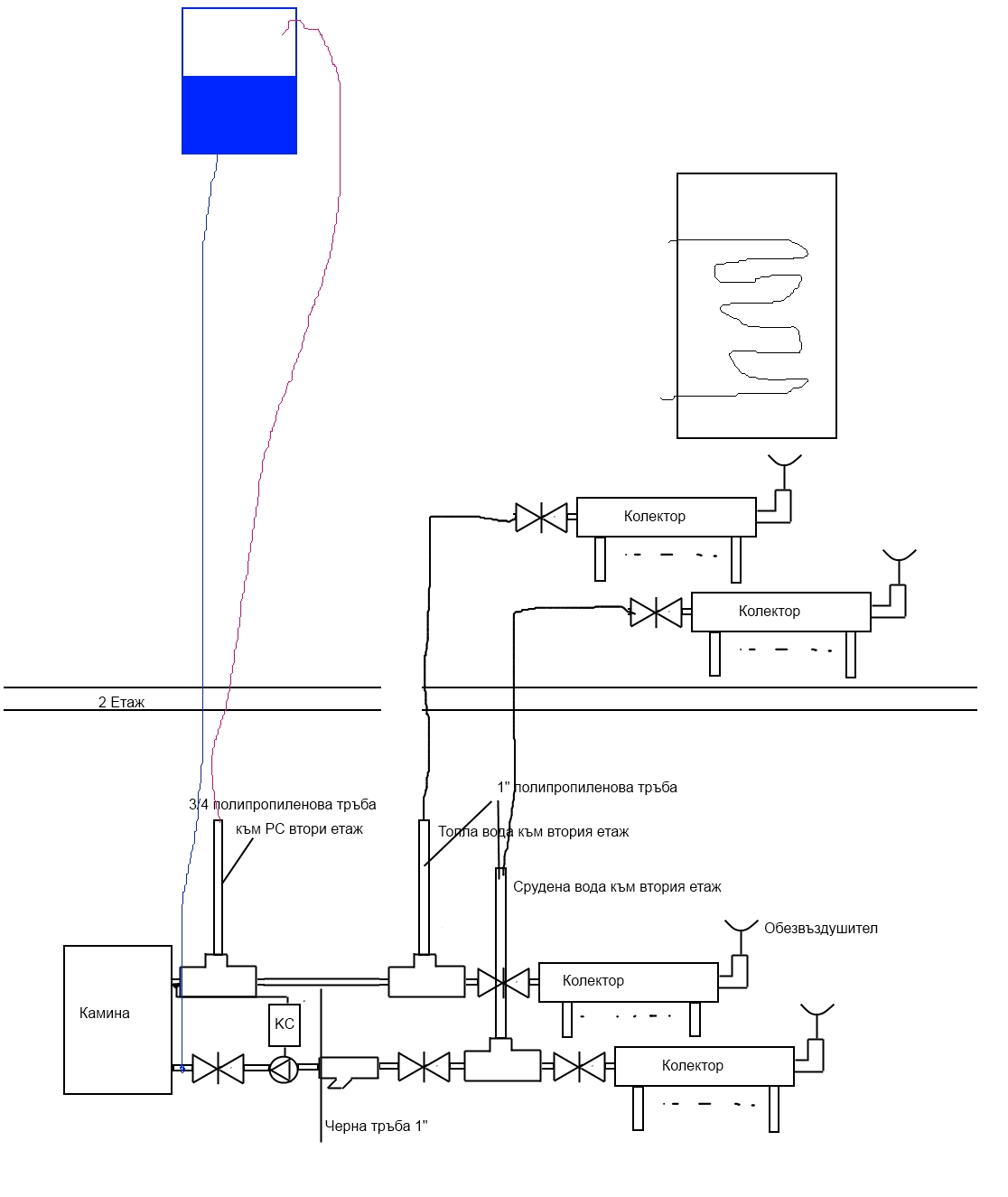 Благодаря много за разясненията! Може ли да ми посочите някакви примерни схеми на свързване на камината с помпа , колектори и т.н.