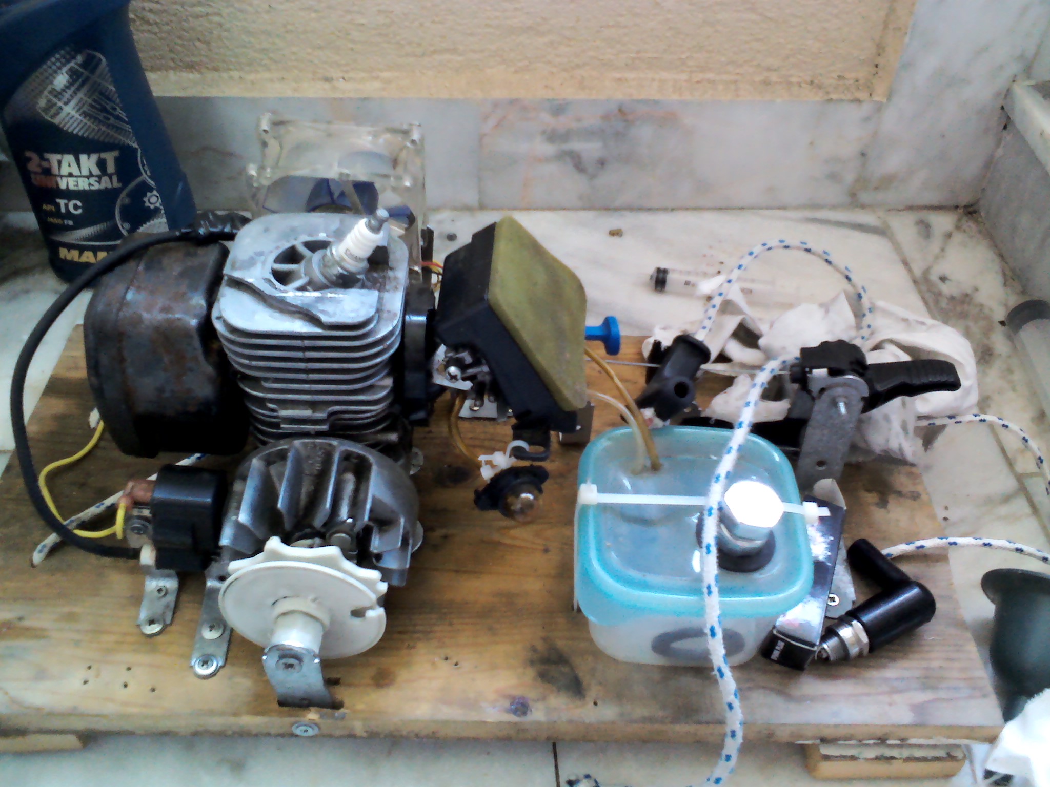 Здравейте имам двутактов двигател от резачка за дърва изкаран е от корпуса и закрепен върху дъска има компресия искра карбуратора е почистен постъпва гориво в цилиндъра правилно е сглобен но не пали някои може ли да помогне благодаря предварително