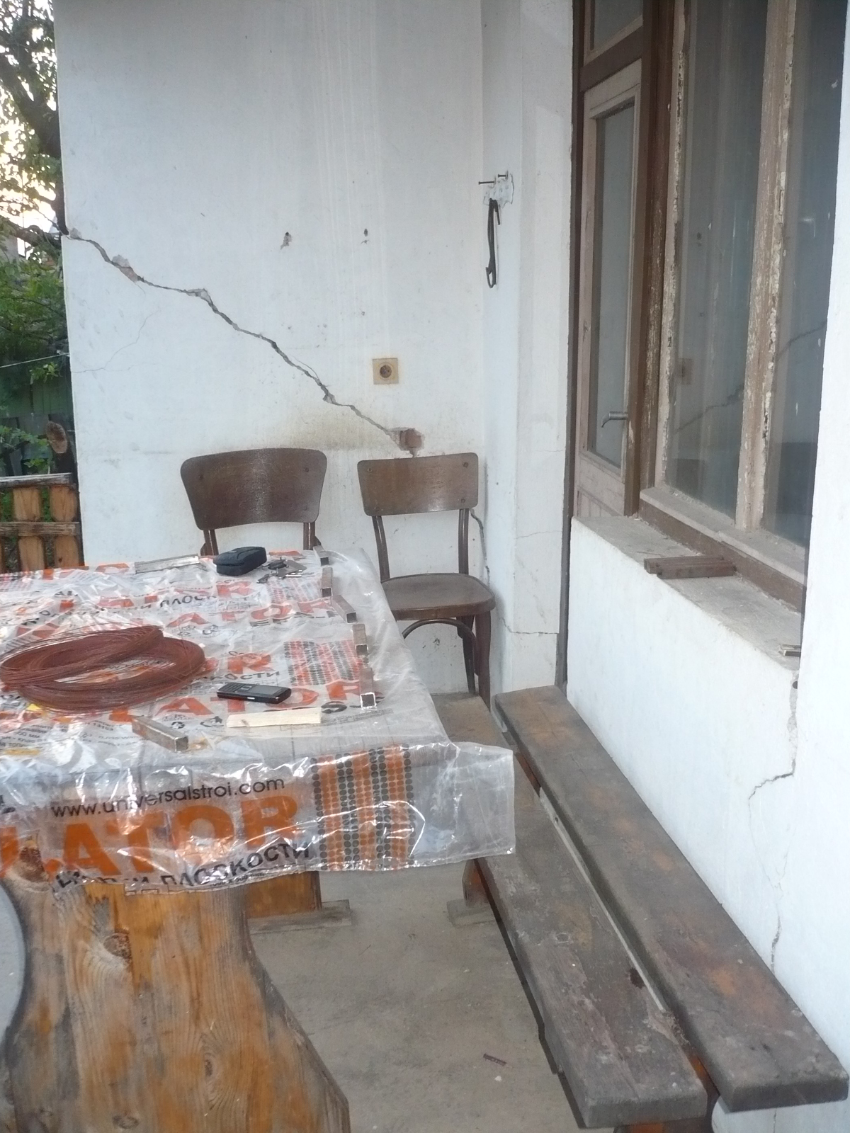 Ще се съглася с мнението че къщата е построена извън всякакви противоземетръсни норми и при сходни поражения от земетресението на къщи в Пернишко комисията даде предписание да бъдат съборени.За съжаление това е положението.Според мен в тази къща е опасно да се живее.От самолет се вижда че не основите са поддали,а първия етаж не издържа натоварването на втория.
