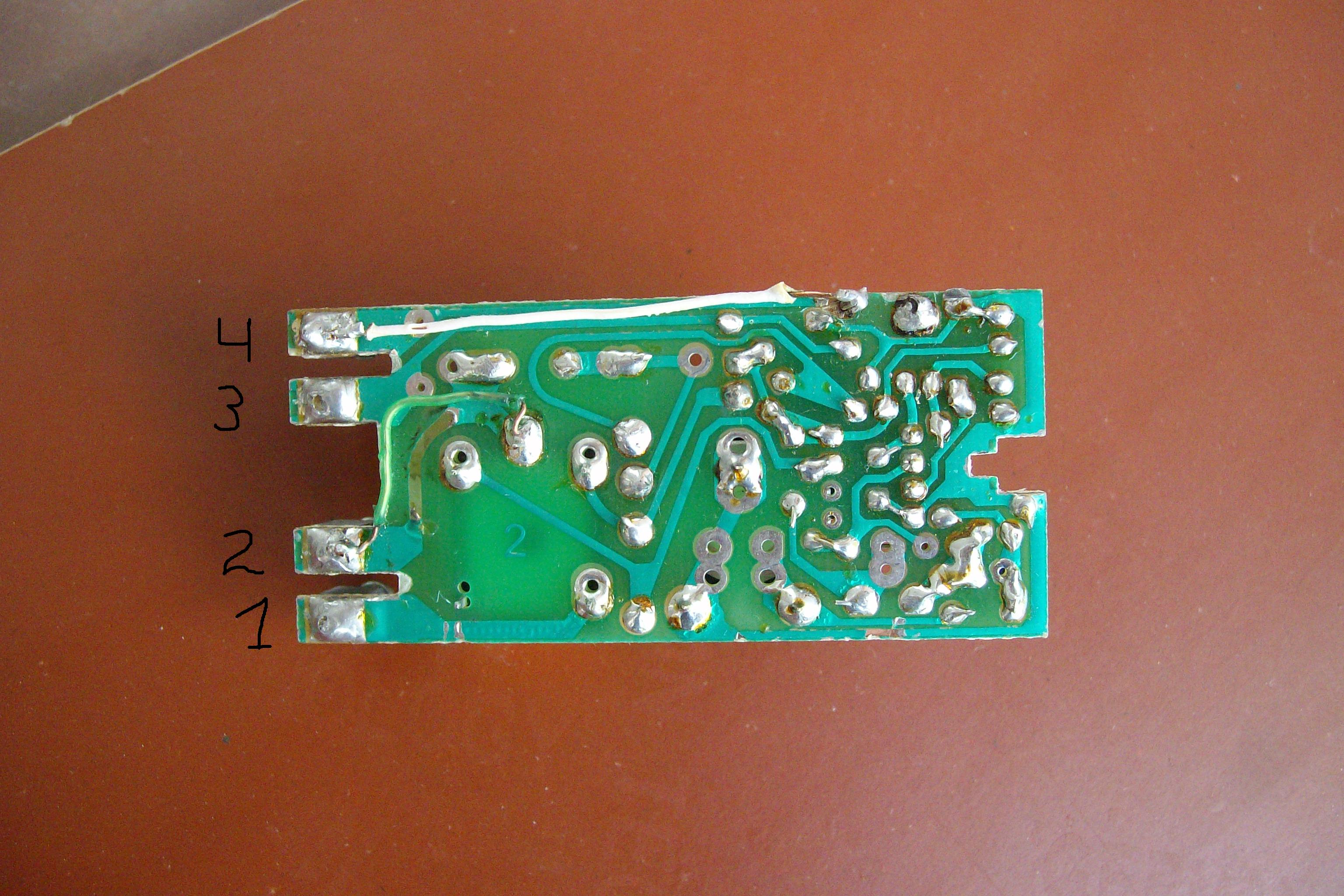 Ето снимки на платката му: Резистора след бялата жичка е сменян с 338 ома. Не знам колко е бил оригиналния, който явно е бил изгорял подобно на по малкия си събрат на една от снимките (до диода).