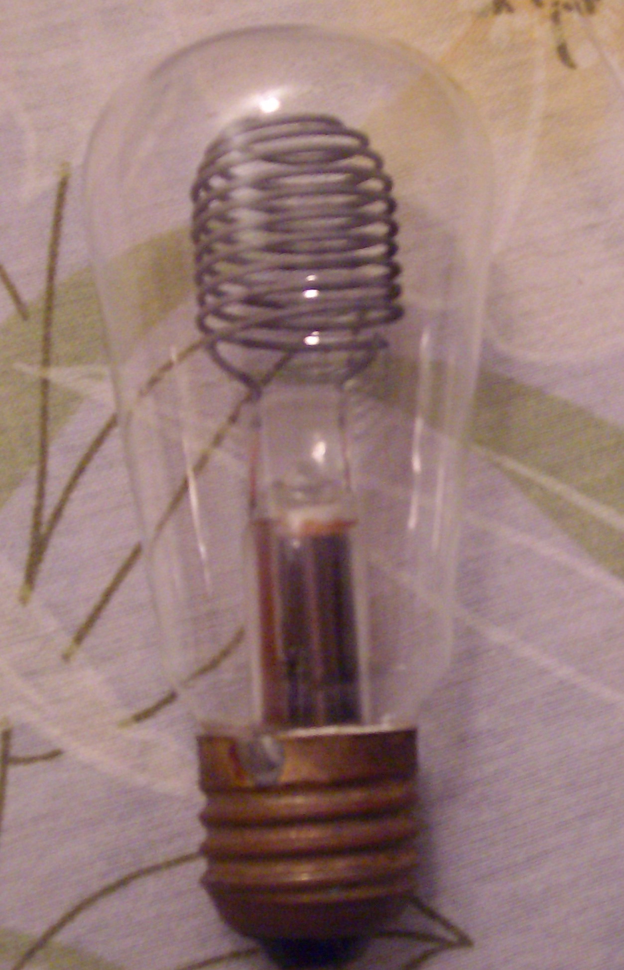 Здравейте, отдавна имам една лампа. Вероятно и някаква глим лампа на цокъл E27. На цокъла с полуизтрити букви пише "респром". Точно в центъра на балона отгоре спиралата е прекъсната(така си е фабрично).