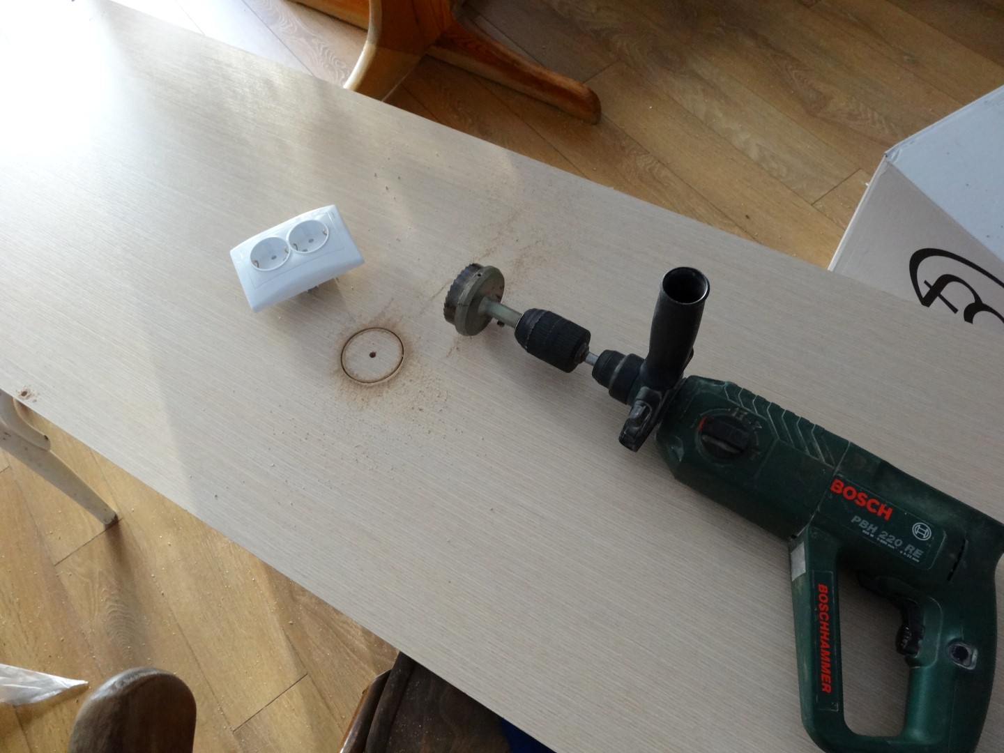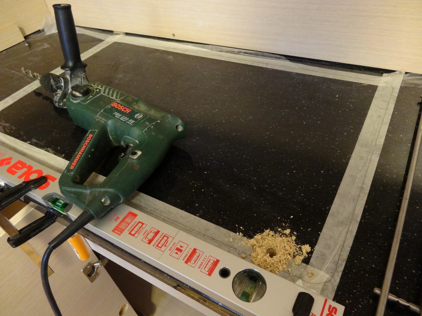 Предвид това, че всичко сглобявах сам си взех една от тези ъгловите стяги от Praktiker, свърши доста добра работа и помага при подобни индивидуални своеволия, цената й беше 13-на лева. Шаблона за диблите си го начертах сам и дадох на един фрезист да ми го направи... В последствие видях, че в Praktiker имат шаблон на Wolf нещо си, та може би беше безсмислено да търся фрезист ама карай