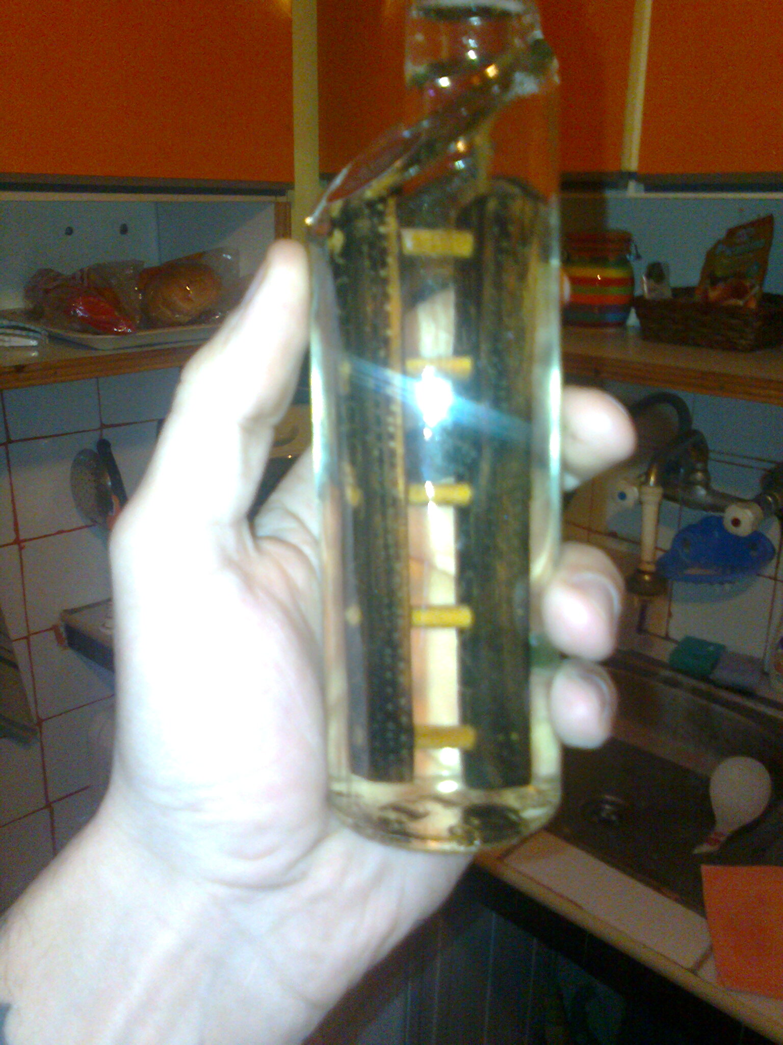 Е, чакай де още се уча. Пък и шишето е малко. Трудно се работи, защото не знам какви приспособления да си направя. Щипки, шишове и какво друго. Няма от кого да видя или да си купя.