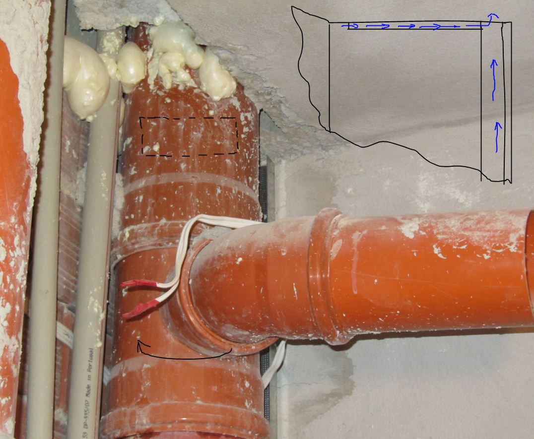 Наклона по възможност към вертикалния щранг, все пак е принудителна вентилация.