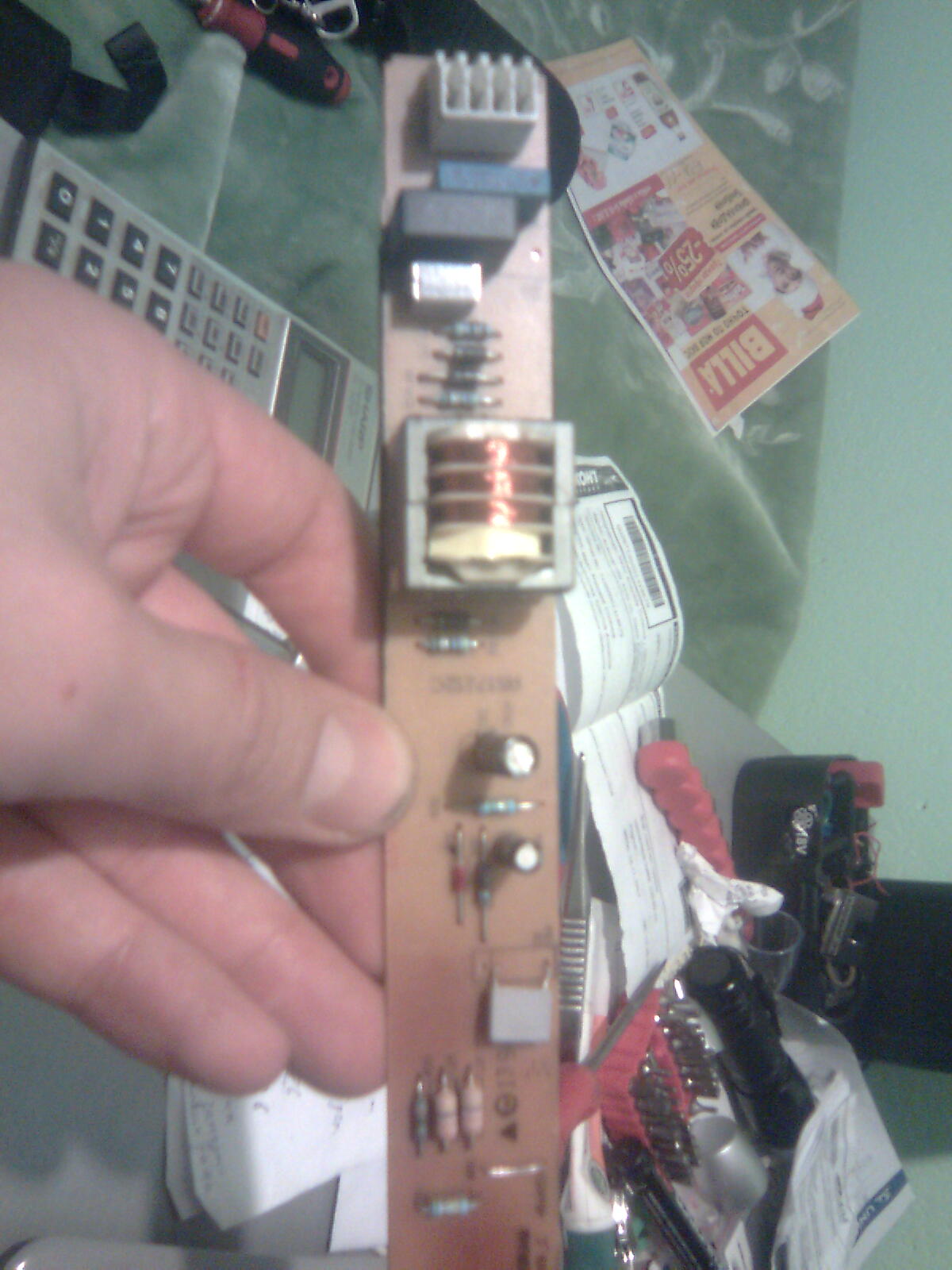 отворих го и вътре има доста елементи по платката. някои има ли идея какво да проверя и как да го проверя и дали може да се поправи нещо. мерси много на отзовалите се.единственото което се вижда с просто око е че този големия кондензатор се е подул от горния край. предполагам че трябва да го сменя. дали ще се оправи или нищо не ми пречи да пробвам.някакви други идеи.