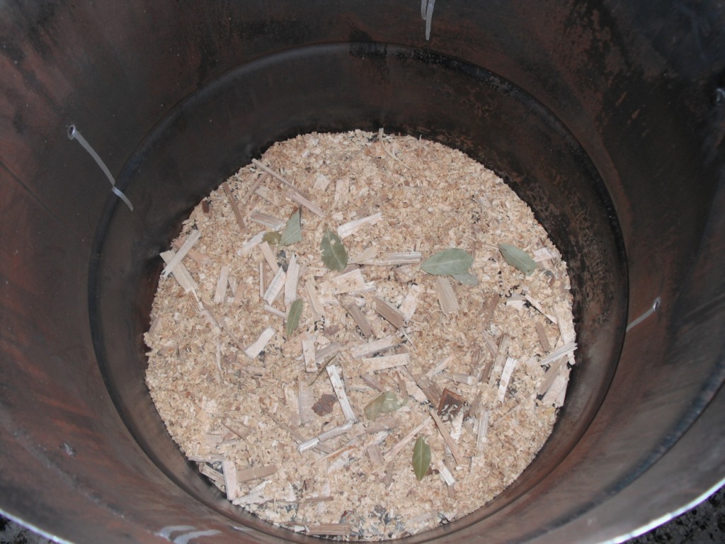 През 30мин/час поразбутвам "огъня" и слагам по малко пилки,но става и с изгнили дърва, номера е да се избягва запалване,че тогава едно,че няма много пушек,а и горещия дим придава аромат на опърлено...