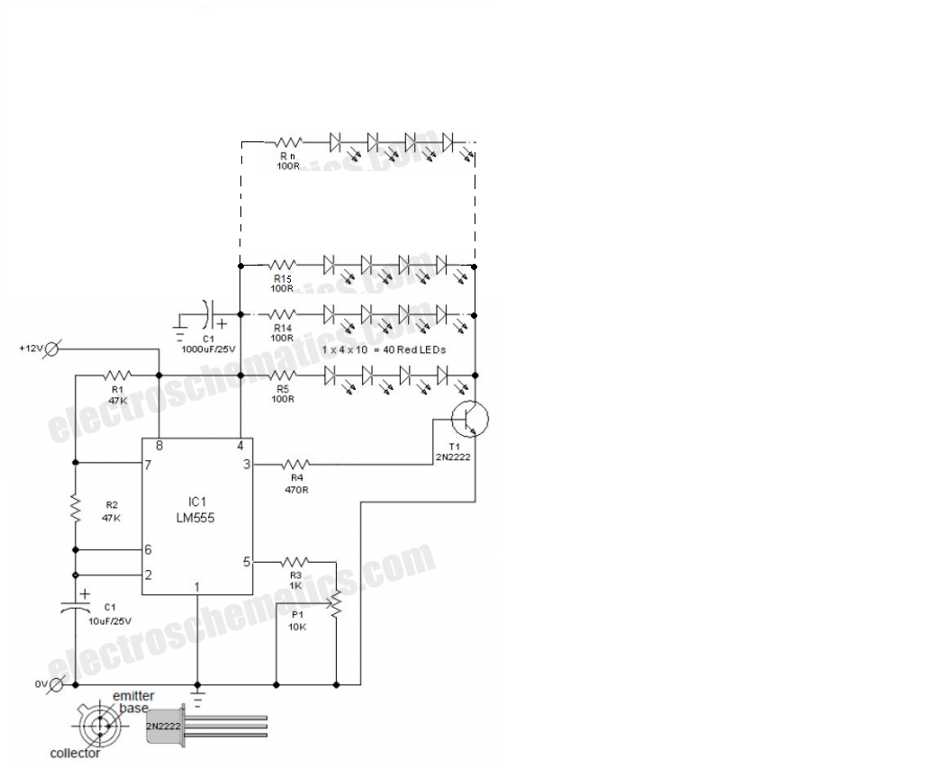 На мен идеята ми беше точно 100mA но ме е страх да на изгорят. Свързването на диодите пак ли трябва да са по 4, както в схемата или може 6 с различно съпротивление и какво да е то за да получават 100mA. Дайте съвет какъв транзистор да използвам за свързването на всички светодиоди. За тези готовите съм ги виждал на клип в youtube, но светят в точка на разстояние, не са хубави, а за другите са малко непосилни за мен в този момент.
