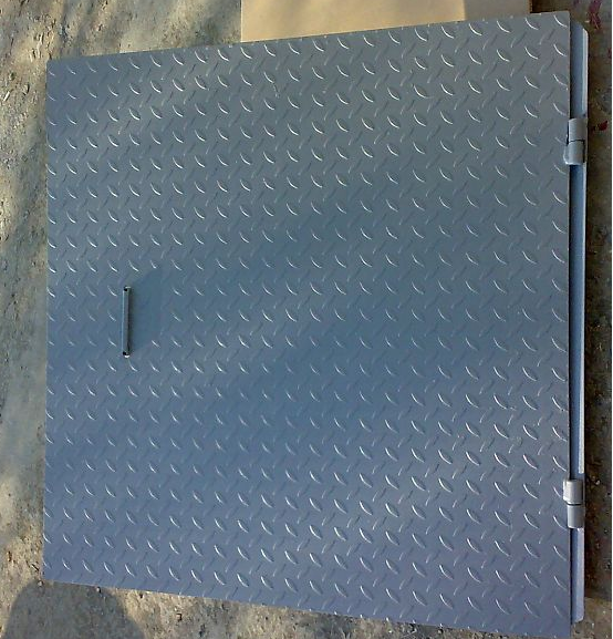Върху едната ми шахта се минава дори с камиони понякога. Рамката е кух профил 40/40 с дебелина 2 мм, и върху него рифел 4 мм. Размера на капака е 80/120 см. а в бетона е винкелна рамка 45/45 така монтирана, че при затворено състояние всичко е наравно. Много е здраво, но инкасаторката от ВиК не може да я вдига.