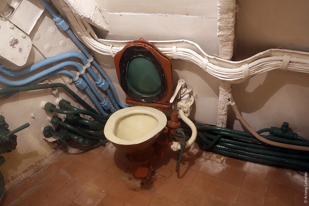 Да,това е мизерен кенеф в руска подводница :lol: Като си се изсрал в супника натискаш педала и една мощна струя отнася полезния товар и от другата страна вакуум помпата изсмуква съдържанието да не се задръсти канала :irre2: :lцl: и айде в морето :-D