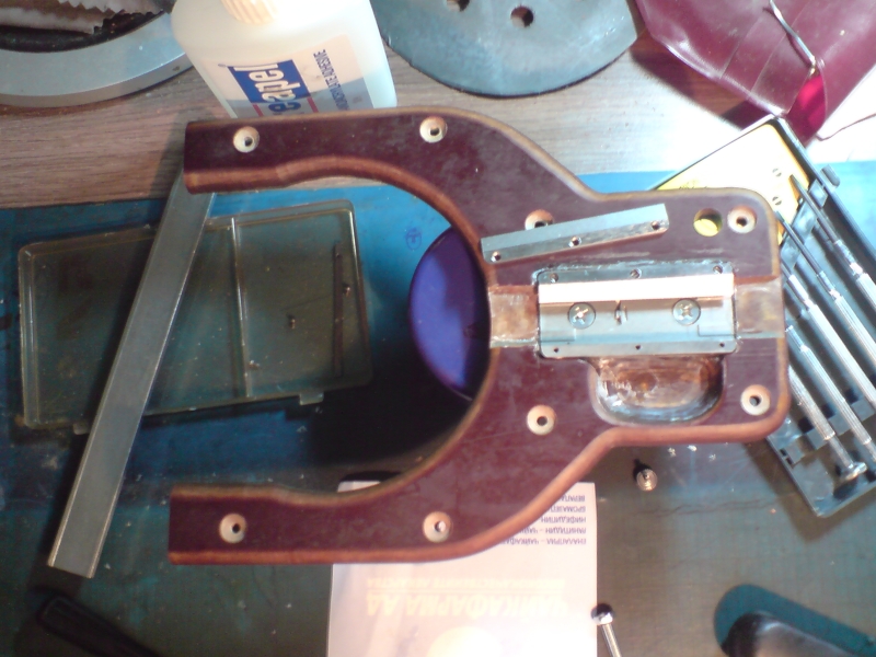 DSC04031.JPG Начина на закрепване на тялото на шублера за гетинакса, с винт М4 и лепило за здравина.