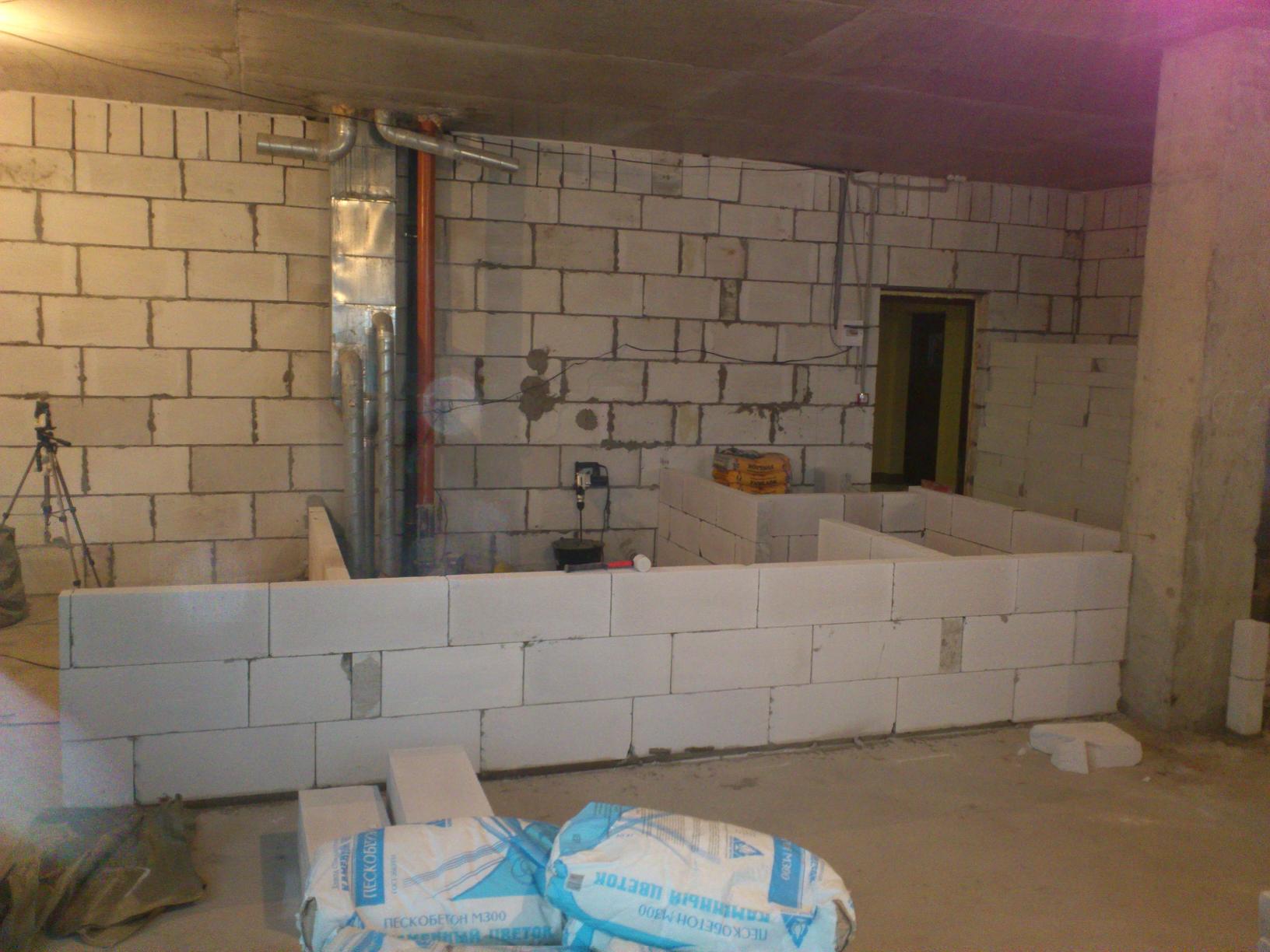 Таджиките не са дошли да качат материалите(имаше проблеми със асансьора) и ги качихме сами(500 бр. итонг и 80 торби по 40 кг пескобетон), спестихме една скромна :? сума 6000 рубли(300 лв). И направихме три реда зидария.