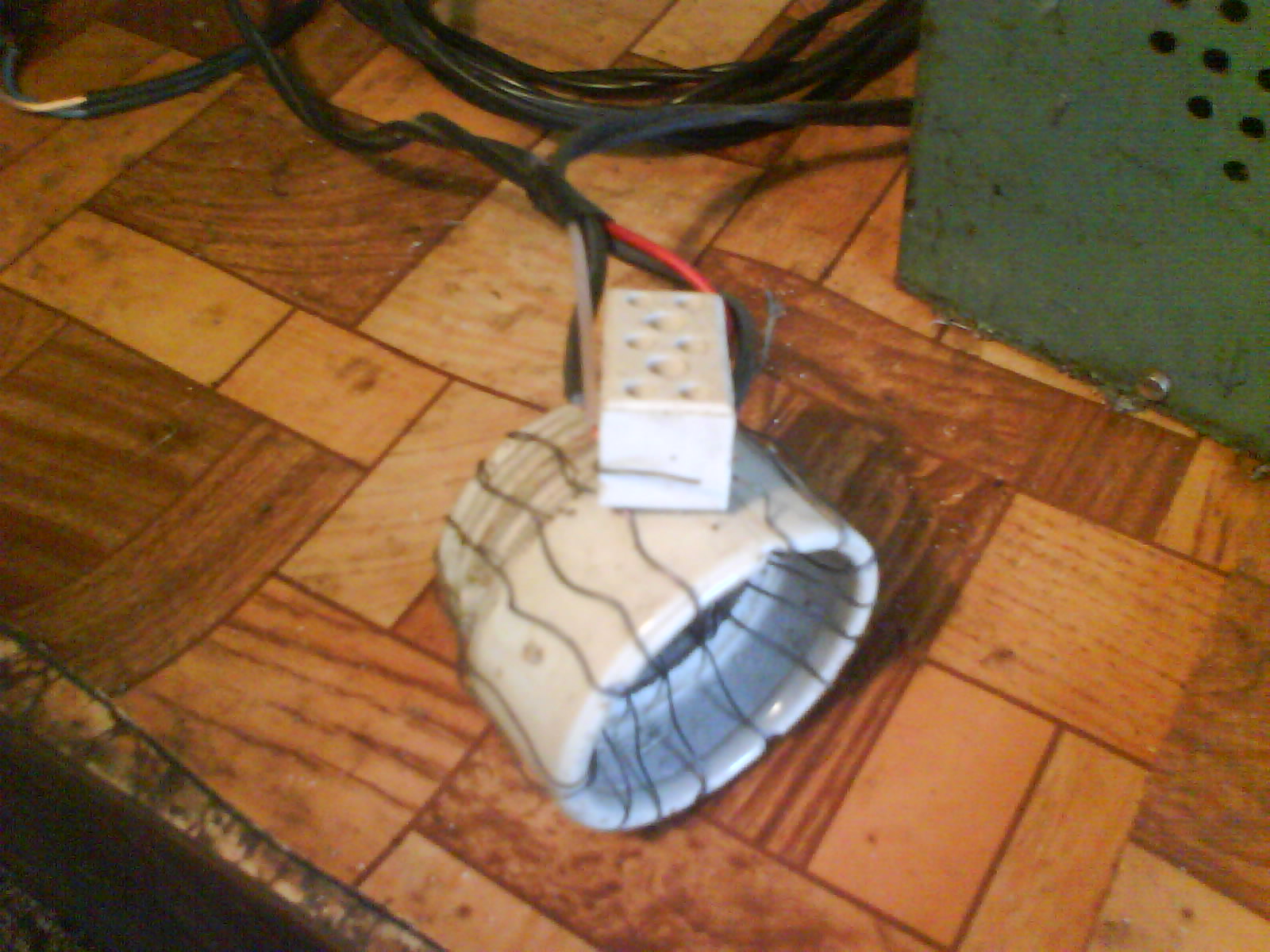 захранвам мотора с траф за зареждане на акумулатор, но свалям тока с парче кантал, за да паднат малко оборотите...