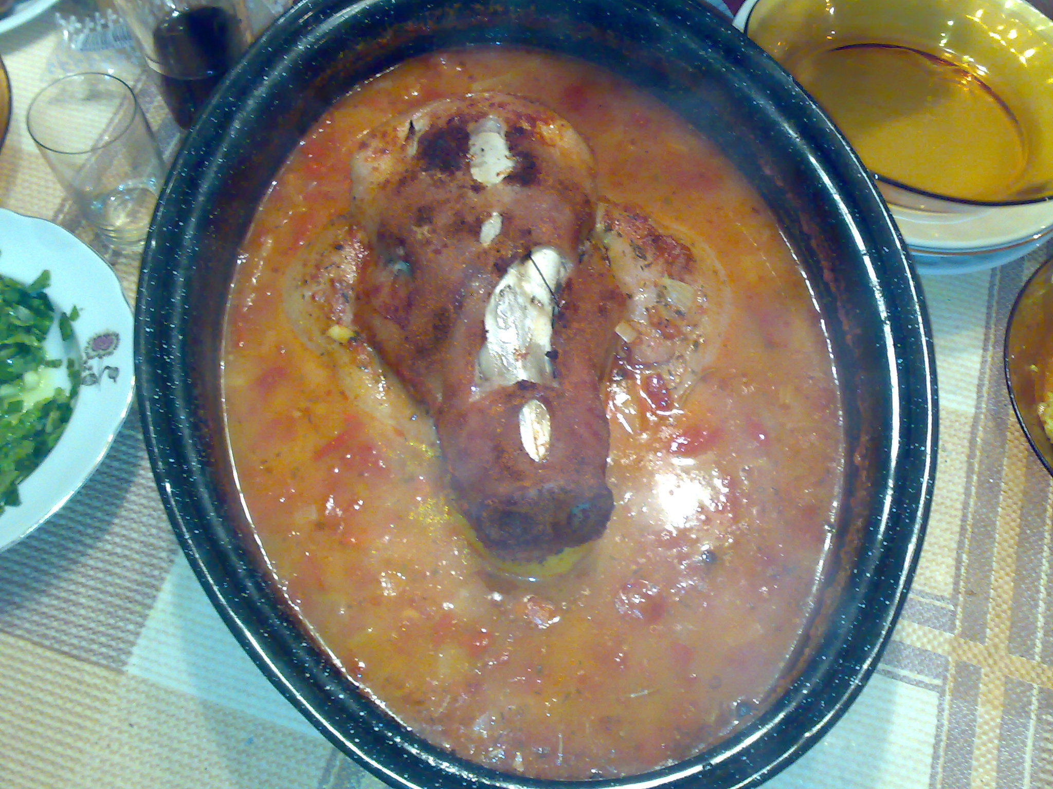 , малко сол, червен пипер, полях с бульон и във фурната за два часа. Докато си изпием аперетива дойде време за вечеря и воала- много бира изпи