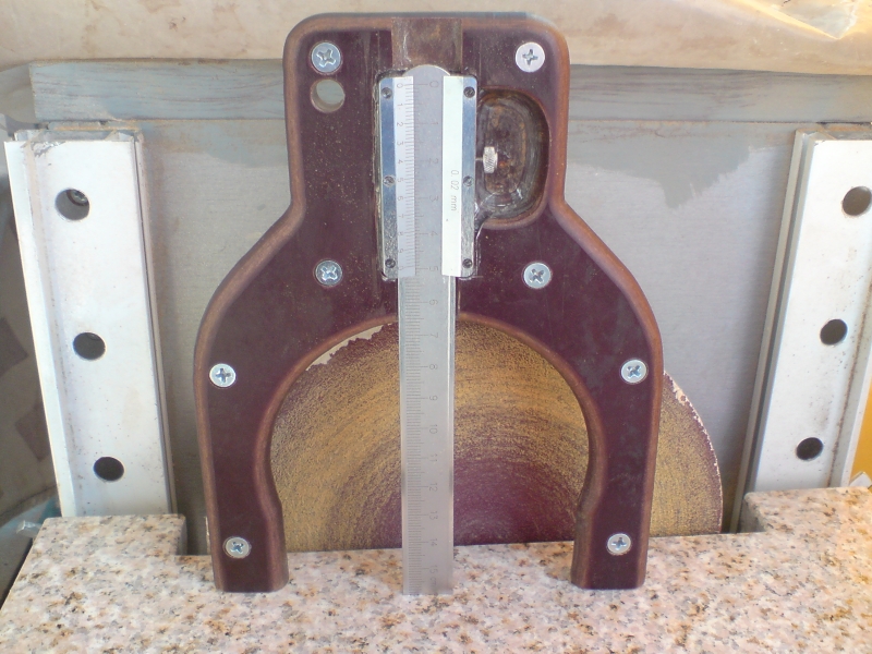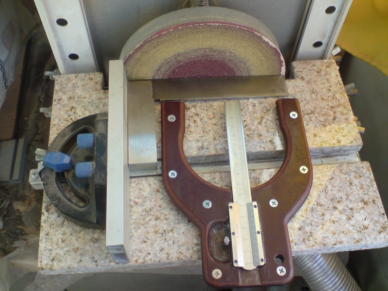 Вижда се и как подравних трите точки на дълбокомера. Шублера е застопорен на 0мм, а по дългите "крака" ги изшкурих на дисковия шлайф, докато се изравнят с шублера.
