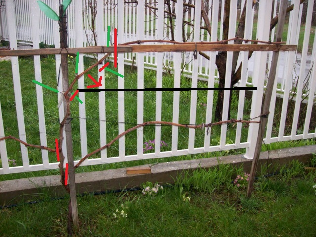 3. първата външна пъпка на плодната пръчка отляво я оставяш за формиране на бъдещото ляво рамо