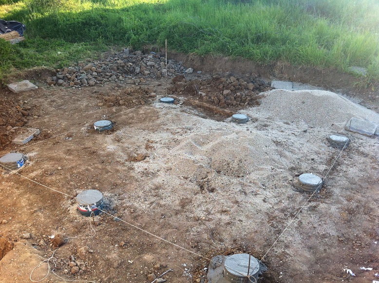 Мисля пода да го направя по следния начин. Да заравня земята, след това да положа тръбите за мръсния канал, да сложа палета и върху тях за закова ОСБ. И това нещо да го ползвам за под, върху ОСБ-то ще сложа балатум. И след което ще се изграждат стените.