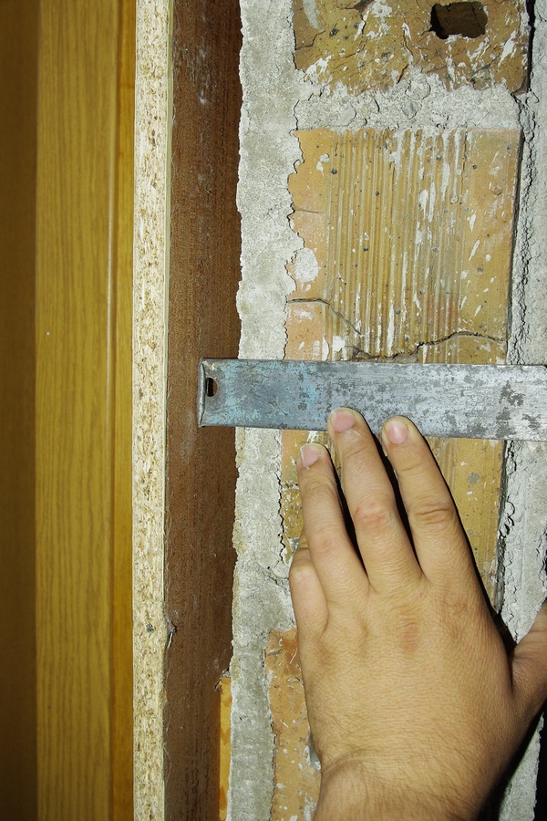В тази кухина ще попаднат винтовете,които ще фиксират алуминиевата каса.Мисля да закрепя няколко метални планки за тухлите,преди да се измажат с вар и те да станат бъдещата опора на вратата
