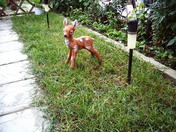 Някак си всичко ми седи праволинейно.Извади плочките и нареди пътеката змиевидно от една плочка като в широките части можеш да сложиш туфи от ниска туя и лавровишна комбинирани с цветни петна с цветя.Накрая можеш да боцнеш някое малко езерце.А,и извади тези бордюри по края-излишни са.С тях може да наплавиш някоя декоративна стеничка в края където да пуснеш някакви увивни растения.