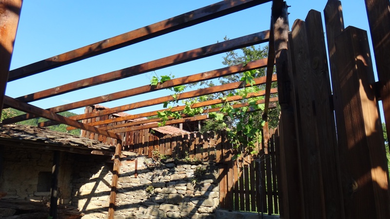 . Но подкрепян и разхлаждан с немалко количество бира успях да довърша и лакирам асмалъка и оградката в задното дворче. Той е най-обикновена конструкция от гредички, семпла и непретенциозна. До след една-две години се надявам лозичката да го е покрила изцяло.
