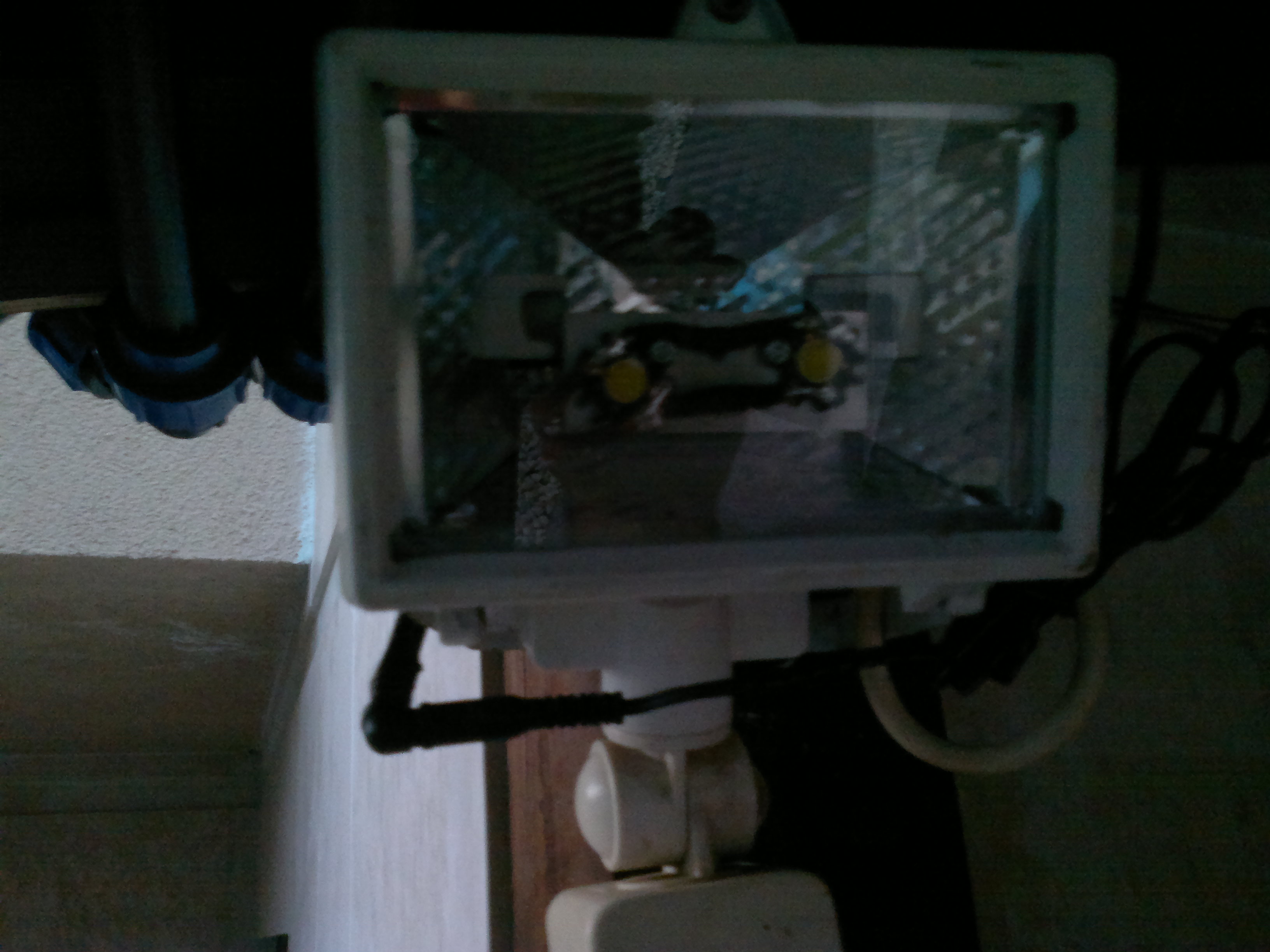 Сглобих си лед прожектор с два диода и стара вана от прожектор.
