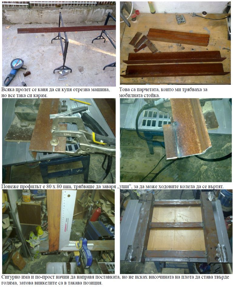 Ето го и следващият проект. Не е така артистичен като предишния, но ще ми върши много добра работа. Преди време имах късмета да си купя един абрихт-щрайхмус на старо, защото отдавна исках да имам по-голям абрихт и бях решил вече постепенно да подменям любителските (китайските) инструменти. Понеже работилницата ми е един гараж 4 х 7 метра, много бързо почна да ми се свършва пространството. Реших да сложа по-големите машини на мобилни стойки, за да мога да ги местя, когато се налага. За стойката, която виждате, съм похарчил около 25 лева. Колелата са 18, а останалото е за железариите, които иначе отиваха за скрап.