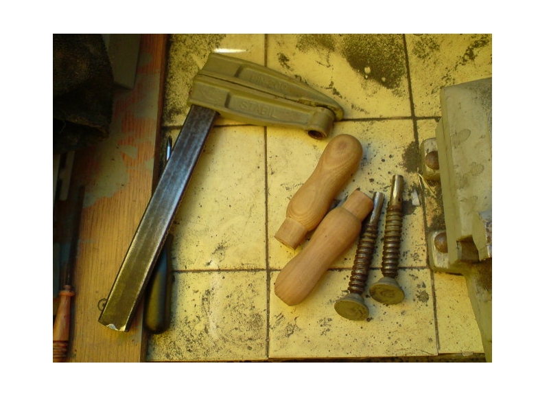 Преди време възстанових две стяги(под ръждата се оказа, че са маркови САЩ производство) и едно старо руско стоманено менгеме. Ето малко снимки от етапите. Дръжките на стягите ги правих от бряст, доста твърдо дърво е.