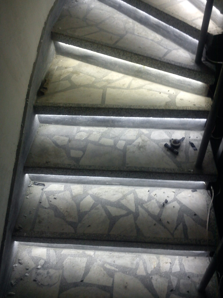 Първите 5 стъпала са готови да видим кога ще ми престигнат и другите ленти за да монтирам и тях ето ефекта малко кабели се виждат но като поставя всичко тогава ще пребирам всичко накуп а и нямам захранването все още другата седмица ще имам лента която е обаче с по 60 диода на метър незнам дали ще има разлика с нея но преддполагам че да затова няама да е сложа ще си я запазя за нещо друго ако ми скимне някоя идейка :D :supz: