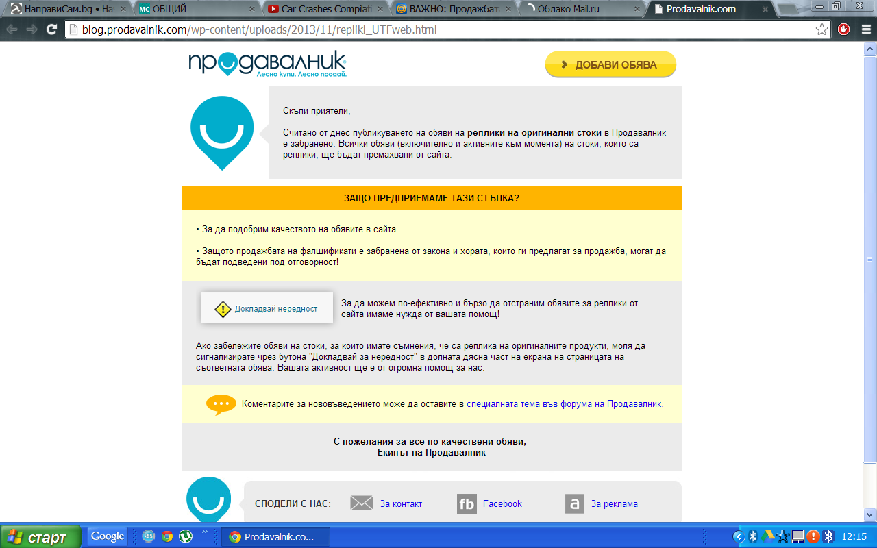 Някой се е жалил в КЗП :) И бая машини ще отидат в небитието :-D