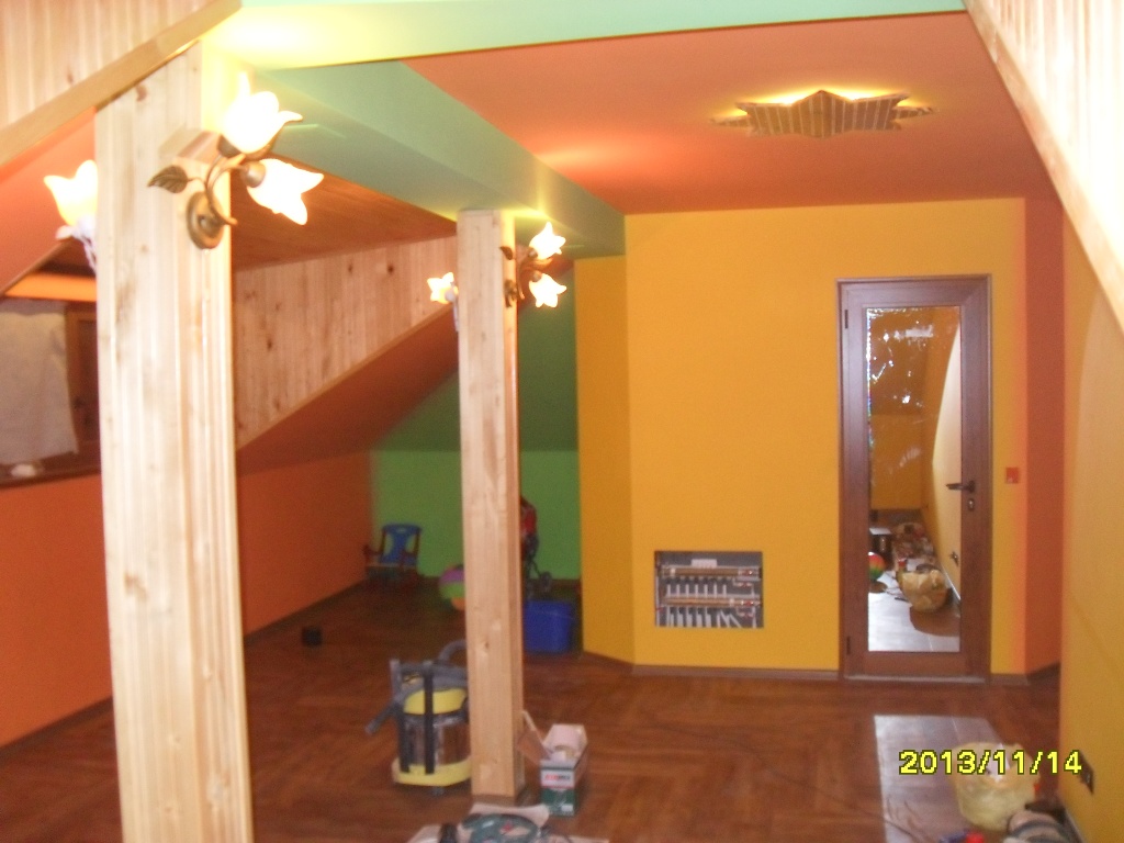 '''''предприемате ли специални мерки при опроводяването на ел. инсталацията по дървените елементи и какви ?'''' - ами нищо специално при мен,стандарните гофрета за кабели(при гипскартон е добре да навиеш колко можеш по малко рапитки в кабелите