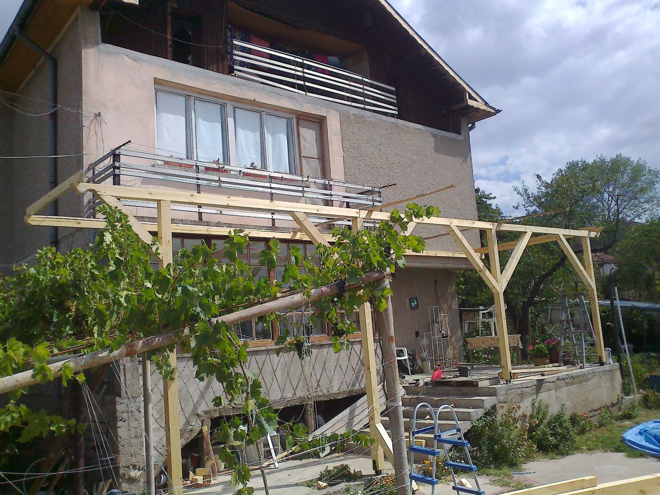 тук ще ви покажа как си разширих терасата и под разширението се получи удобен навес.