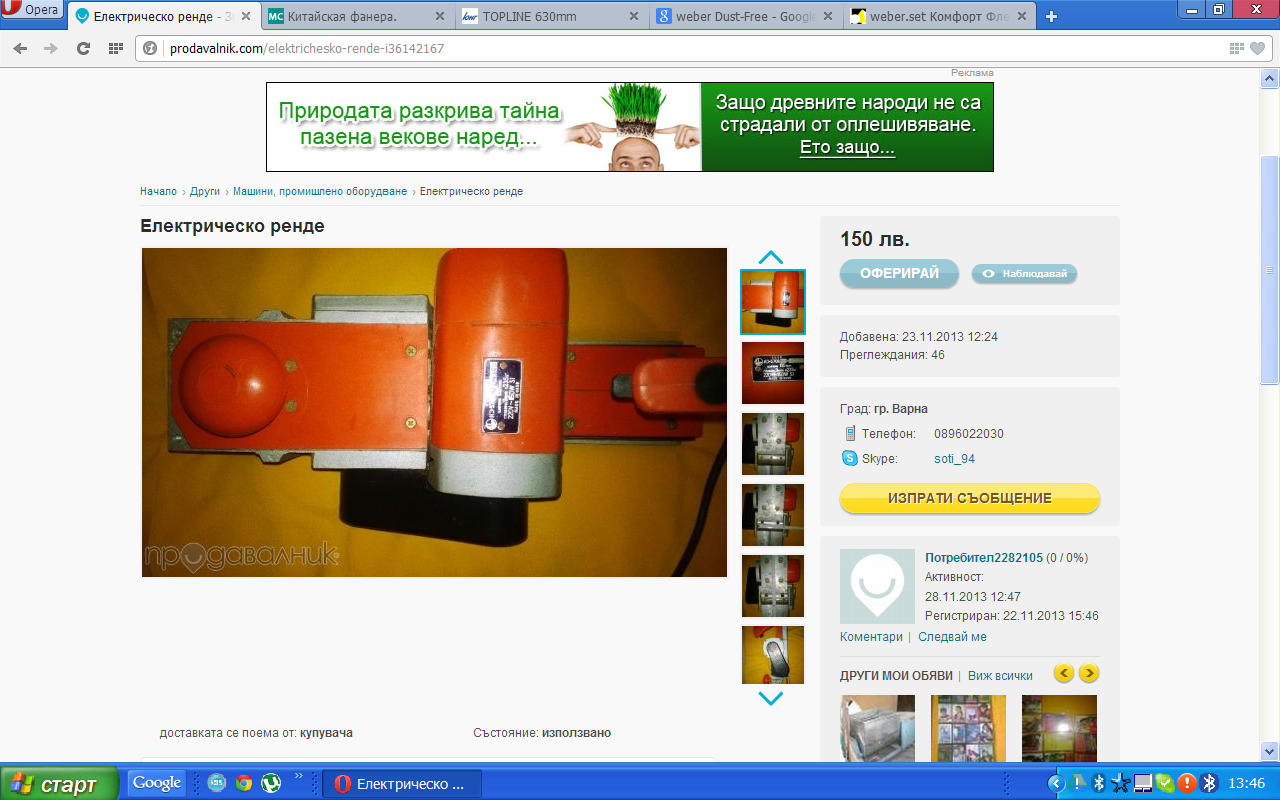 Еди, това ренде се продава поне от два месеца. И аз не знам защо се задържа толкова много. Преди това се продадоха две рендета стенли № 4 пак за по 25 лева, а аз бях готов да дам 30 паунда. Евала на продавалника - голям човек е.