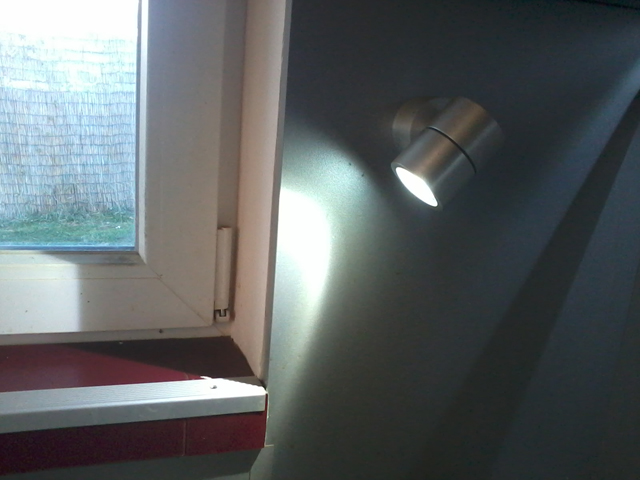 Тва над мивката го купих от едно малко магазинче за ЛЕД джаджи в СФ - на ул Буная и ул. Каймакчалан - зад МОЛ Сердика се пада. Представлява осветително тяло (цилиндър) от инокс с нам си каква защита от влага IP66 ли - нещо такова и 12 волтова мощна ЛЕД луничка вътре. Казаха ми, че е за осветяване на фасади по принцип. Може да се кълчи само в кръг - не можеш - към стената и към себе си, но за моя случай (да е в страни, не над мивката) - беше единственото, което намерих. Доволен съм - мивката свети доволно :)