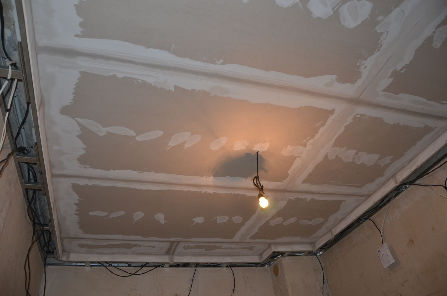 Неразминати нефабрични фуги на гипскартона, профили на 60 см, може и да има и други грешки.