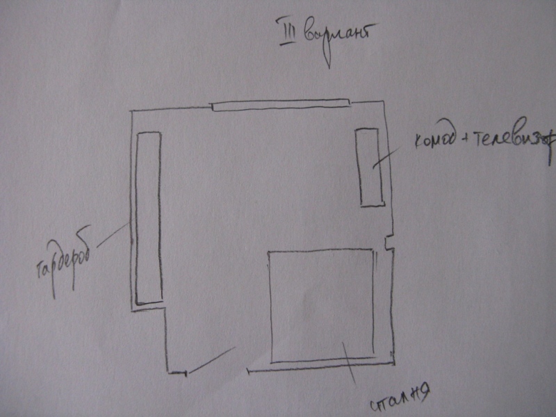 Човек, преди малко ме отрязаха. Бях склонен на вариант 2, но ми казаха, че в никакъв случай леглото не може да бъде обърнато от изток на запад. Бабини истории. Починалите спали така :). Дори родителите ми излизат с аргумент, че и докторите така казвали. Пречело на сърдечно-съдовата система :). Прозорезът ни е на юг. Всъщност всички стаи са с прозорци на юг и това ме тормози много. През 2-3 години прелакираме дървената дограма.