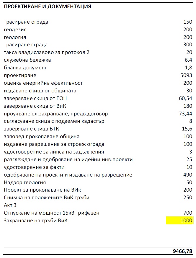 някои от малките суми може и да съм изпуснал, ВиК горе долу толкова. Чакам една промяна и отивам да подпиша протокола за извършени СМР.
