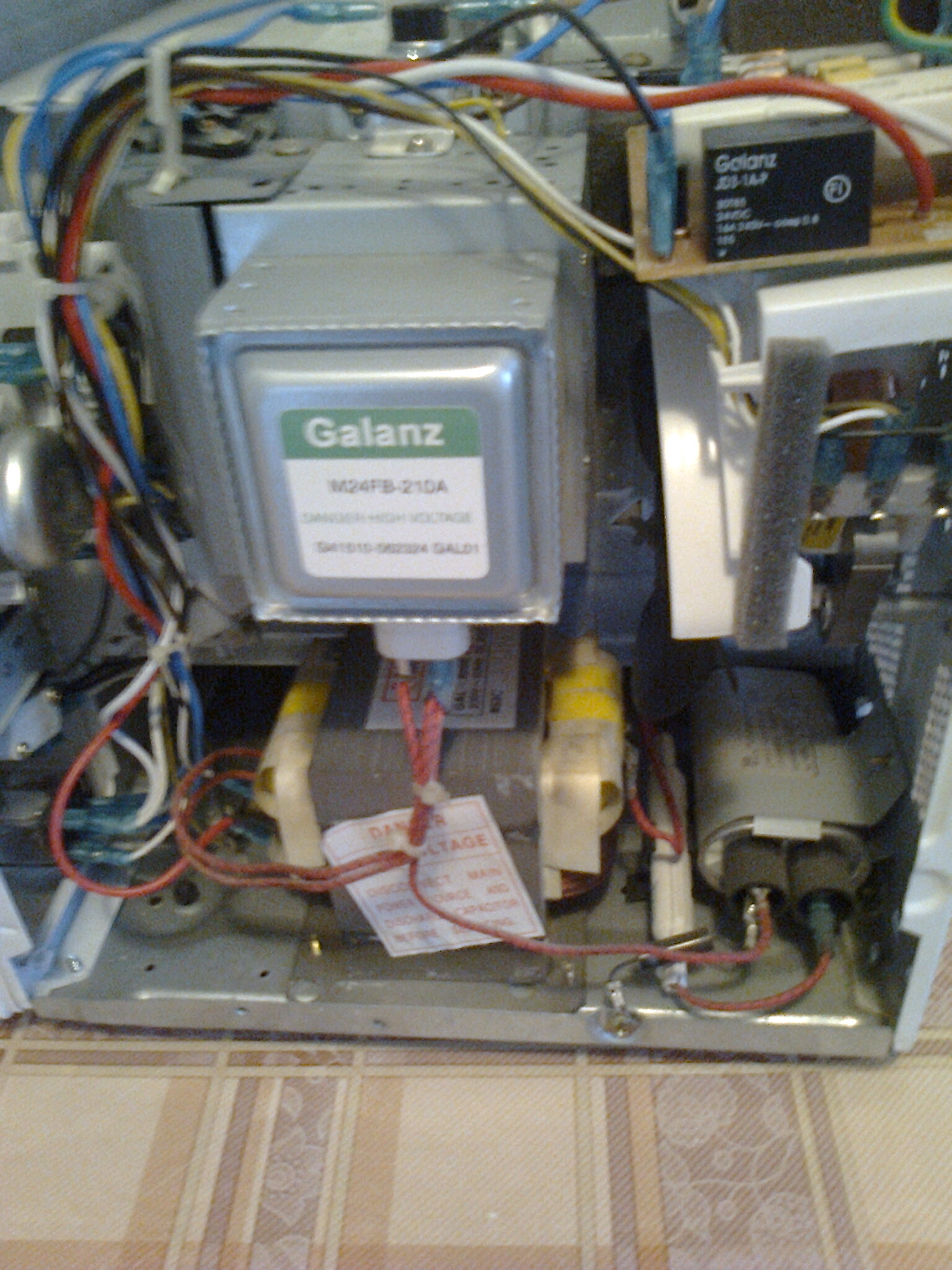 Печката е на 8г и до сега беше перфектна. Днес сутринта работеше нормално, но на обяд жената като включи да топли яденето се оказа че не работи. До сега не съм отварял микровълнова, но понеже принципно всичко сам си ремонтирам, та искам съвети относно евентуалната повреда. Гледам схемата и не знам кой от чарковете може да се е прецакал.