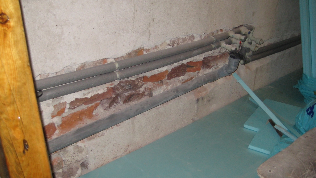 Вече беше дошло и времето на подовото отопление. Два кръга за по около 10 м2 на кръг. И допълнително два кръга за съседната стая която предстои да бъде приобщена към кухнята...