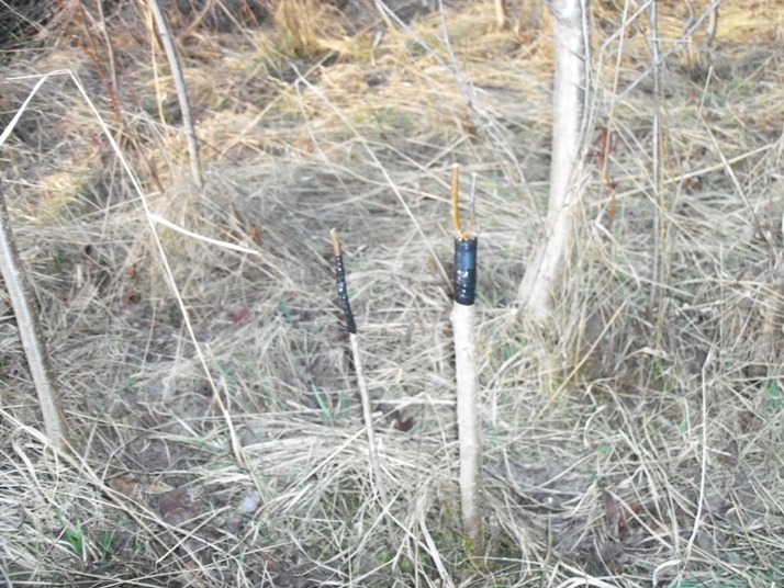 На разцеп.Най- лесно ми е. А, това, тънкото, дето са две присадки на една снимка е на "подобрена копулация" Изображение