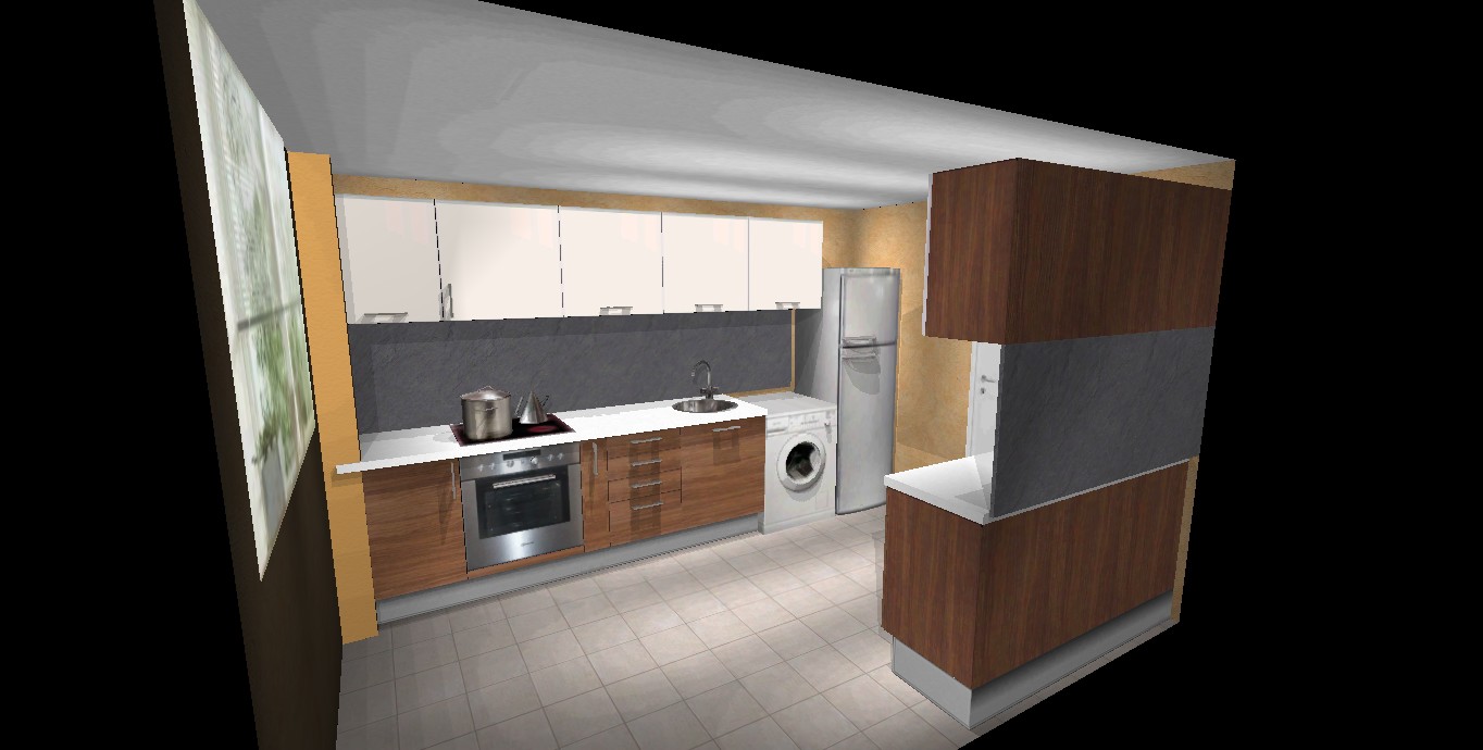П.П. Програмата си има някои недостатъци. Вместо врата е проход/отвор към трапезарията. Над пералнята не може да се сложи плот. Шкафчетата на срещуположната стена може да завършват с заобляне... Котлоните ще бъдат само два центрирани вместо четири. Мивката може да е правоъгълна, а не овална...
