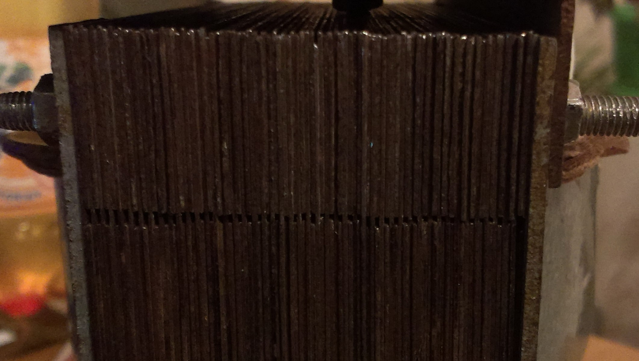 ми се виждат големи процепите между Ш-образната и малката ламаринка. Може леко да охлабиш шпилките и с почукване да обереш разстоянието,