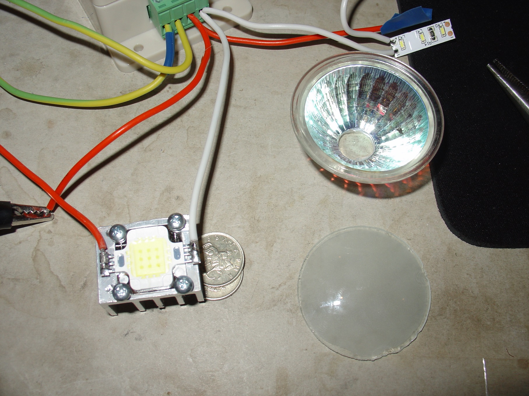 4х1W диоди са свързани последователно. Дадоха ми и една не-димираща луничка - исках да видя, как е направена