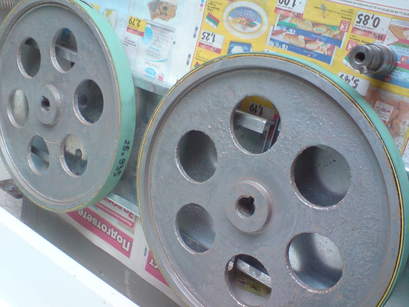 При разглобяването на горното регулиращо колело установих, че вала е блокирал и не се движи. По тая причина колелото 30см алуминиева отливка, е превъртяло . Инженерите не са предвидили шпонка и канал между колелото и вала и няма как да го застопориш и стегнеш болта, който затяга колелото.