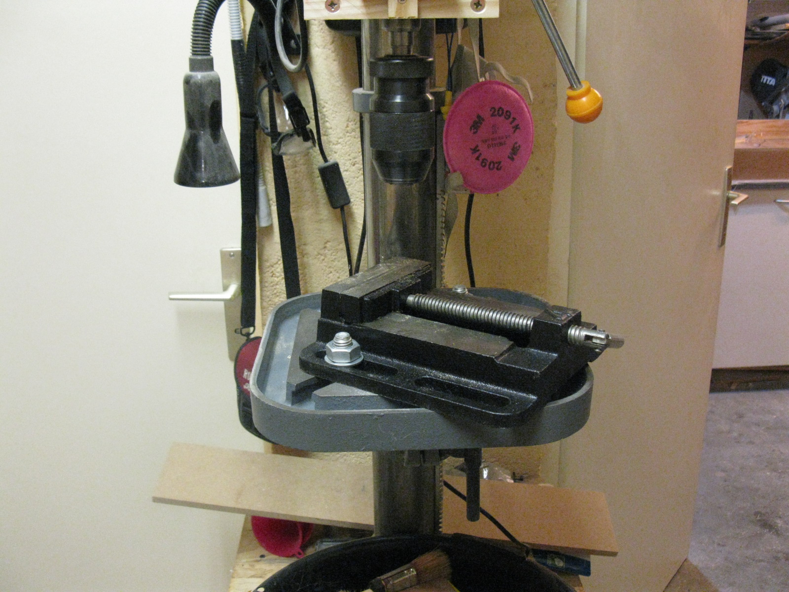 След няколко дневно ровичкане в нет-а стигнах до извода, че дървените масички се закрепват върху металните, но 3 сантиметра от капацитета на бормашината не ми се губеха и реших да го правя както аз си знам, а не както хората го правят и да закрепя масата върху съпорта за металната маса а не върху самата металната маса.