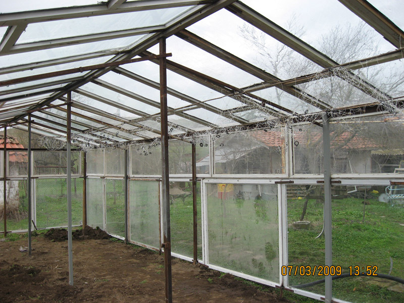 Моя го направих едноскатен (с идеята за абсолютен минимум разходи на материали). Разглобяем е точно като палатка. Освен това предната "стена" и покривната са предвидени да се отварят (навиват) при "оправяне" на времето. Все ми се струва, че е добре при възможност зеленчуците да се огряват от пряка слънчева светлина?