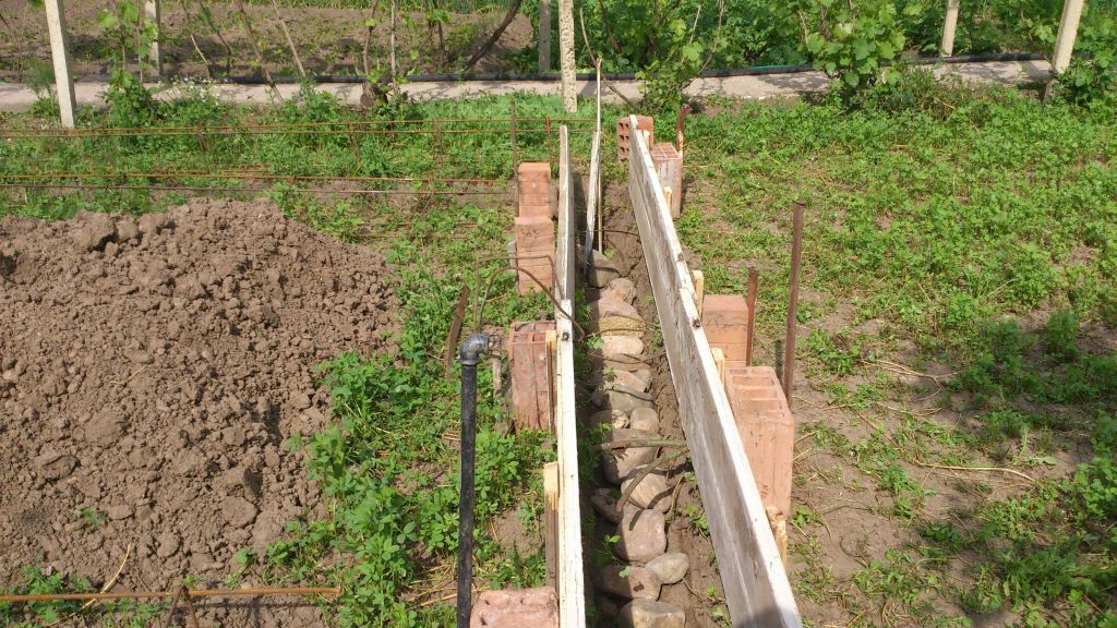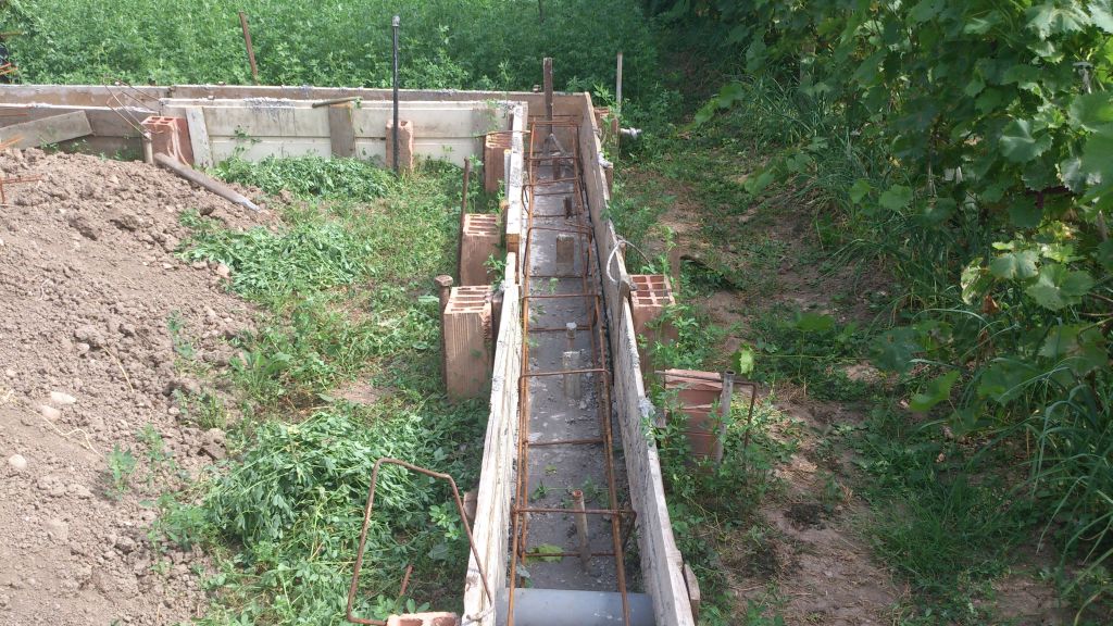 В момента съм излял ивични основи с дълбочина около 40см, широки около 30. Използвани са речни камъни, а частта, която е над земята е с бигли, арматура и по-ситни камъни и бетон разбира се. Остава да се отлее плочата и от тук идват въпросите ми.